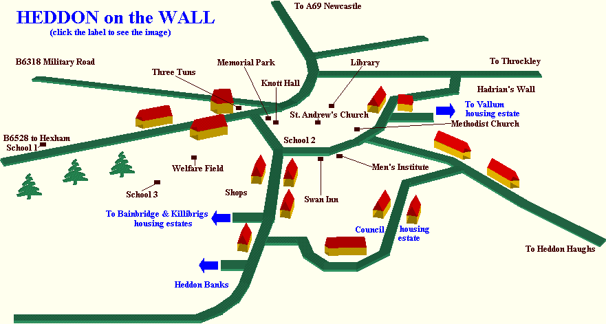 THREE TUNS LIBRARY MEMORIAL PARK KNOTT MEMORIAL HALL HADRIAN'S WALL MEN'S INSTITUTE SWAN INN SHOPS WELFARE FIELD SCHOOL No2