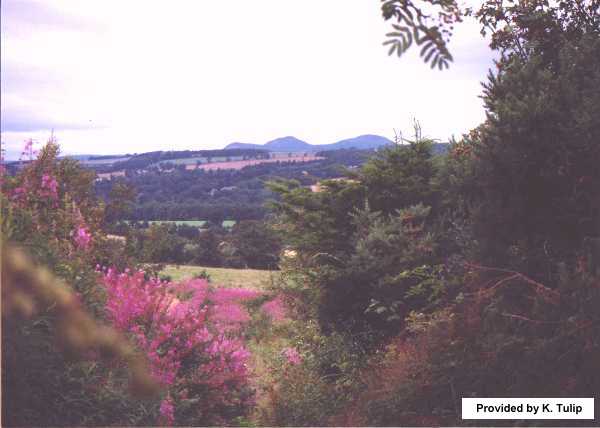 The Way then drops down through woodland and passes through the village of Bowden. There is a section just after Bowden, where the path follows the Bowden Burn, according to the official maps dogs are not permitted on this section, although we had our dog and met some local people with their dogs. After this section there is about a mile on the road before the Way passes through the edge of Newtown St Boswells. Leaving the village the Way follows the edge of a stream to meet, and follow the banks, of the river Tweed. You will pass the Drybrough footbridge over the Tweed, which if time allows, can be crossed to the village of Dryburgh. A visit to Dryburgh Abbey will cost £2.50 (in 2000) or you can climb the hill out of the village to visit the sandstone statue of William Wallace. Continuing to follow the Way along the river bank will bring you into the village of St Boswells.