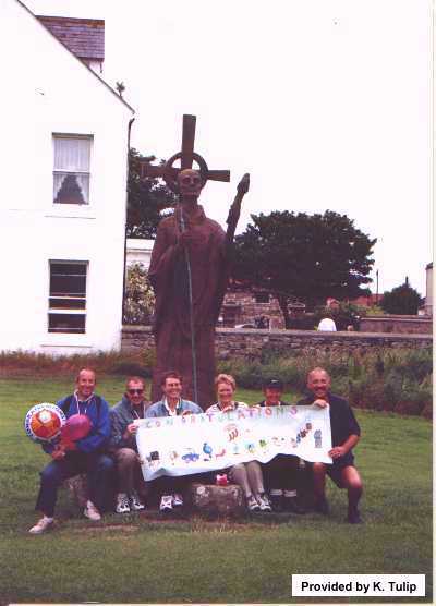 This is a brief description of St Cuthbert's Way undertaken in early August 2000. The weather varied from sunny to wet but was never cold. The paths were in good condition and the Way was very well marked requiring only an occasional reference to a map. In built up areas the Way is marked with signs, usually attached to lamp posts. In open country the Way is marked with arrows and the St Cuthbert's cross logo, attached to posts, gates or styles. |